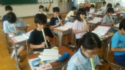 5年生の音楽は「茶色の小びん」の演奏です。