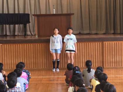教務主任の下谷先生からは、嫌なことや苦手なことを先にやっておくと、後は楽しみが残るだけ。というお話がありました。体育生活委員会は、先週の週目標の反省と今週の週目標の発表を毎週してくれています。