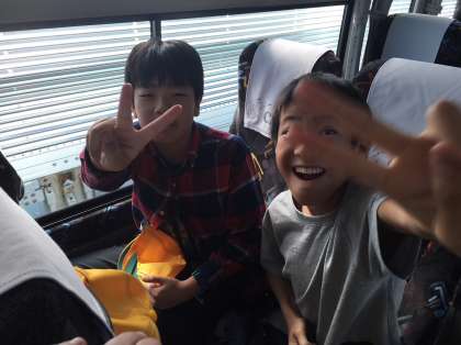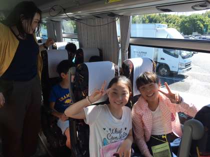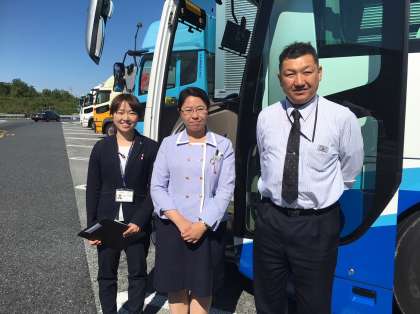 御在所SA出発です。2日間お世話になる運転手さん、ガイドさん、添乗員さんです。よろしくお願いします。バスレクで楽しく過ごしています。