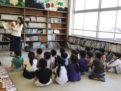 昼放課に、やまばとの会の方による読み聞かせがありました。