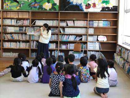 「ちびゴリラのチビチビ」と「キャベツくん」を読んでいただきました。楽しいお話にみんな笑顔でした。