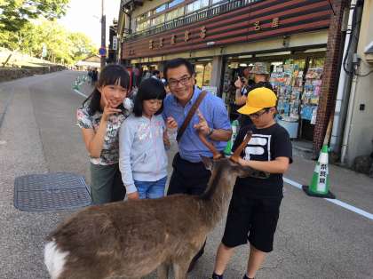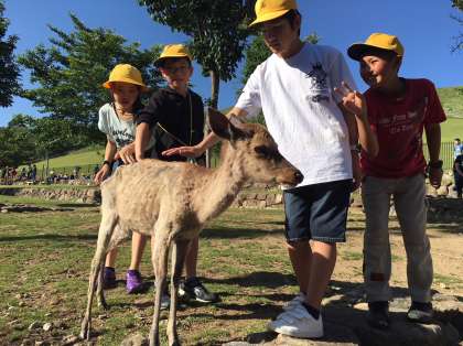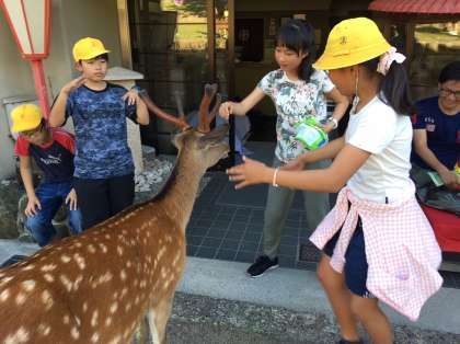 全員無事に旅館に到着しました。旅館前にも鹿がたくさんいます