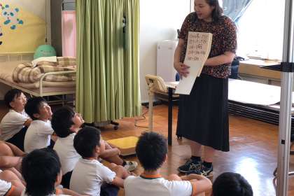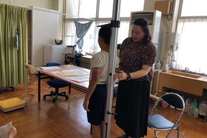 2学期の身体測定です。最初に尾関先生から学校でのケガの状況の話がありました。説明されたことを意識して2学期にはケガを減らしていきたいですね。全学年が今日明日で実施します。みんな大きくなったかな。
