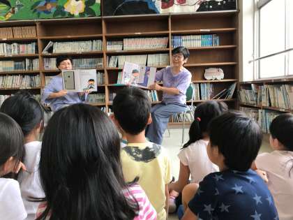 昼放課に、絵本の読み聞かせがありました。二学期初めての読み聞かせです。楽しいお話に、みんな聞き入っていました。