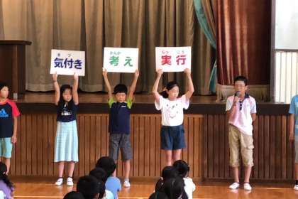今日の朝会では、給食福祉委員会から青少年赤十字について説明がありました。