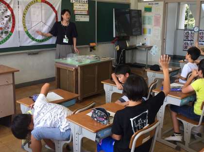 4時間目に4年生は、栄養教諭の小玉先生による食の指導を行いました。バランスのよい食事について考えました。朝食を食べていないという子もいるようですが、3色のバランスがよい朝食を毎日とれるように心がけていってほしいです。