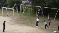 神輿行列は雨天のため中止となり、お菓子が子どもたちに配られました。