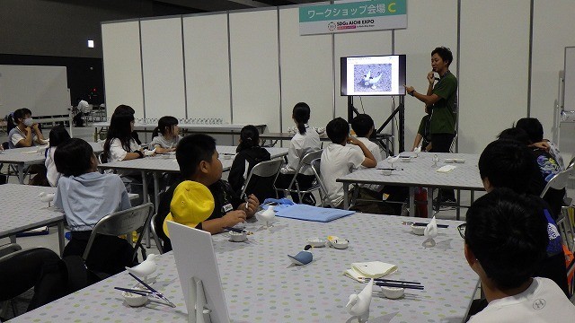 Aichi Sky Expo で行われているSDGs AICHI EXPO に参加し、 さまざまな取組を学びました。大村知事と記念撮影をしたり、ワークショップでは、絶滅危惧種のコアジサシのデコイを作成し、環境活動に貢献する意識を高めました。
