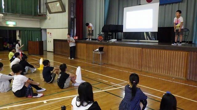 「体幹を鍛える」をテーマに行いました。「猫背」「反り腰」「偏った姿勢」の姿勢がもたらす悪影響を内蔵Tシャツを使って保健委員会の児童が発表し、体幹トレーニングを紹介してくれました。校長から「植物が地面から水や栄養を吸い上げるように、足の裏を床につけて勉強や運動のエネルギーを受け取ろう。トレーニングを習慣にしよう」と話をしました。保健委員会の皆さん、参加いただいた保護者の皆様、ありがとうございました。