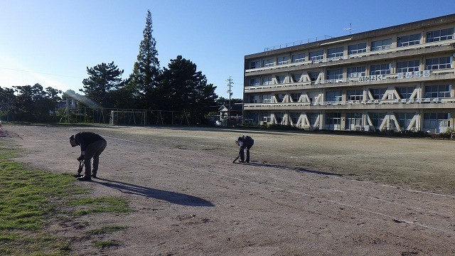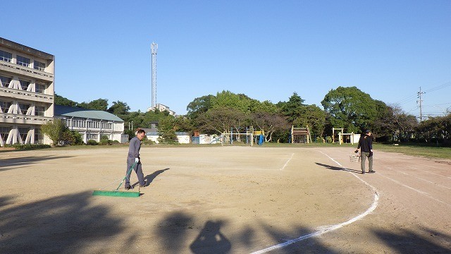 常滑市商工会青年部の皆様によるグランド整備をしていただきました。運動会前にきれいにしたいと声をかけていただきました。ありがとうございました。