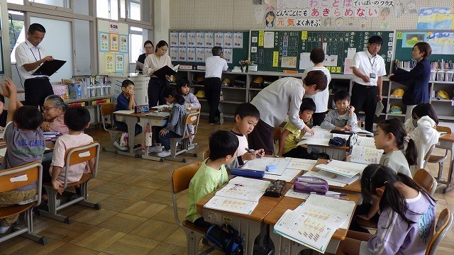 愛知県教育委員会の先生や常滑市教育長様、教育委員様、常滑市指導主事様、常滑市内の先生方の参観がありました。