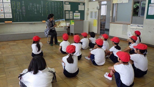 1年生には「とんぼのうんどうかい」、2年生には「リトルホーンと巨大恐竜」「まどのむこうのくだものなあに」、3年生には「からすのパンやさん」、4年生には「くらげのパポちゃん」、5年生には「命はどうしてたいせつなの」、6年生には「おおきいちいさい」「ぼうさい」「ふたり」「しぜんとかがくのはっけん366クイズ」を読み聞かせていただきました。2年生の「くだもの」の本では「ザクロ」が出てきますが、子どもたちは「ザクロ」が分からなかったということでした。本は世界を広げてくれますね。「くらげのパポちゃん」を調べると、かこさとしさんの幻の遺作で今年の2月に刊行された本でした。戦争をテーマにした本。購入をして子どもたちが手に取って読んでほしいです。