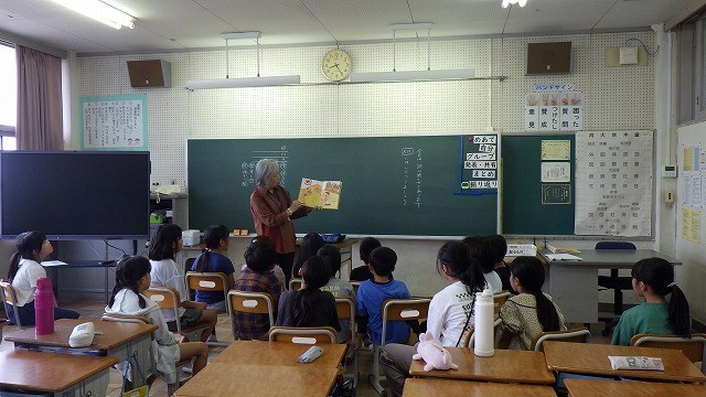 1年生には「いもいもほりほり」「しりとりレストラン」「なぞなぞはじまるよ」、2年生には「トリケラトプス ジュラ紀に行く」「トリケラトプスってどんな味?」「ねこガム」、3年生には「ブレーメンのおんがくたい」、4年生には「いいからいいから」「ぼくがラーメン食べてるとき」「ぼちぼちいこか」を読み聞かせしていただきました。「中野文庫」からも本を選んでいただき、ありがとうございました。