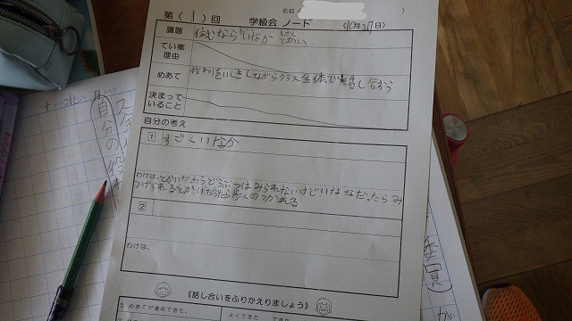 話し合いの学習で、自分の考えをグループで紹介していました。「虫がいるから」は、「田舎がよい」と「都会がよい」の2つの理由に挙がっていました。