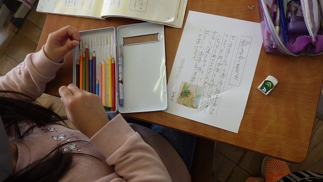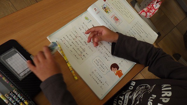 「は」「を」「へ」の間違いを探して直していました。