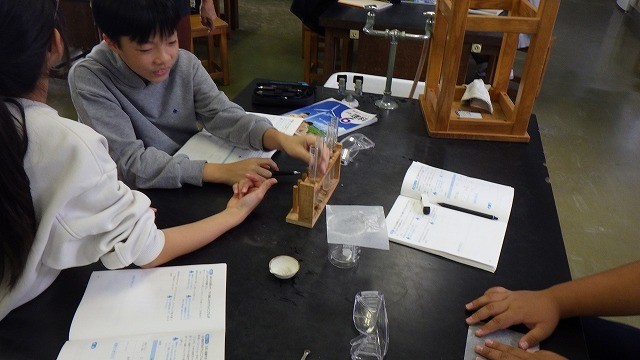 うすい塩酸をアルミニウムに注ぐと泡が出てきていました。水溶液の違い、性質について学習を進めていました。