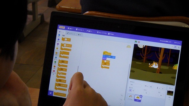 ICT支援員さんからプログラミングについて学びました。自分が考えた動きをブロックを組み合わせて作っていきます。「そっかー」「なるほど」の声が出ていました。