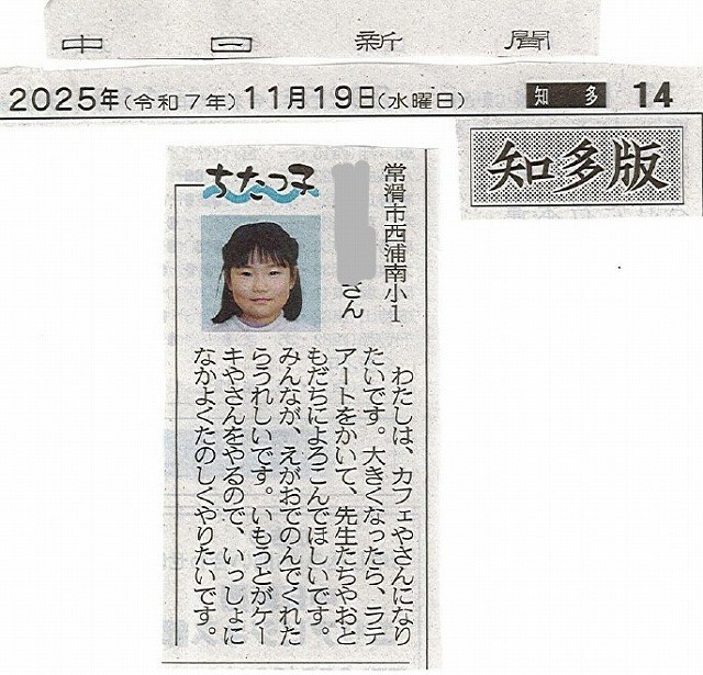 中日新聞朝刊知多版「ちたっ子」に本校児童の掲載が今日から始まりました。明日からも楽しみです。