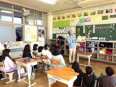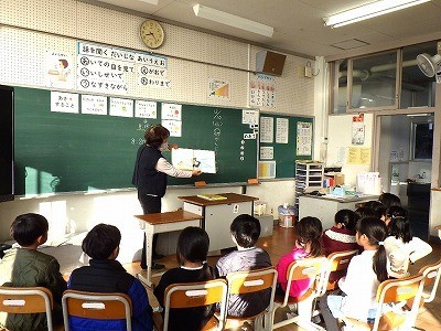 1年生には「したきりすずめ」「とのさまサンタ」「ぼくはからっぽパンツくん」、2年生には「ネルとマリのたからもの」「おいしいもののすきなくまさん」、3年生には「しろいやさしいぞうのはなし」「100にんのサンタクロース」、4年生には「さつまいももち やけたかな」「こねこね ねこのねこうどん」「やきやきてっぱん」「100にんのサンタクロース」「しぜんとかがくのはっけん366クイズ」を読み聞かせしていただきました。たくさん読んでいただき、ありがとうございました。