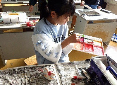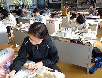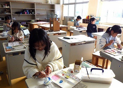 R7.12.9(火)4年生 図画工作「干支の絵付け」