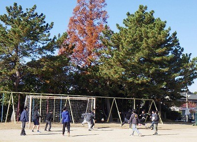 縄跳びをする児童が増えてきています。「ハヤブサや後ろ二重跳びの跳ぶ回数が増えたよ」と見せてくれました。プラタナスの紅葉がきれいです。
