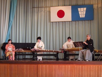 琴と尺八、十七弦の演奏をお聴きしました。竹で作られた尺八の澄んだ音色、低い音を奏でる十七弦が加わり、「千鳥」「越天楽」「いつも何度でも」「エトピリカ」の曲に親しみました。「越天楽」は、日本で一番古い歌だそうです。笙と鈴の音で悪いことから追い払う曲でした。「いつも何度でも」は「千と千尋の神隠し」のテーマソング、「エトピリカ」は「情熱大陸」のエンディング曲です。曲当てクイズでは「ぞうさん」「たきび」「海」が答えでしたが、メロディーを聞いても曲名を当てることが難しかったです。最後に「大きな古時計」「山の音楽家」の曲を演奏に合わせて歌いました。地域の方に支えられた会となりました。ありがとうございました。