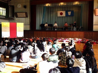 これまで練習してきた成果を発表しました。「さくらさくら」「ずいずいずっころばし」の2曲を演奏しました。指導していただいた早川先生をはじめ、サポートしていただいた地域の皆様、ありがとうございました。南陵中学校の教頭先生にも聞いていただくことができ、ありがとうございました。