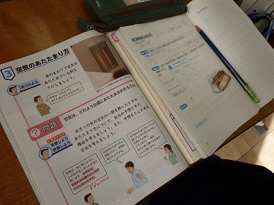あたためられた空気の動き方について予想していました。生活の中から気づいたことから予想していました。