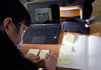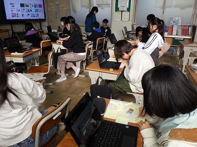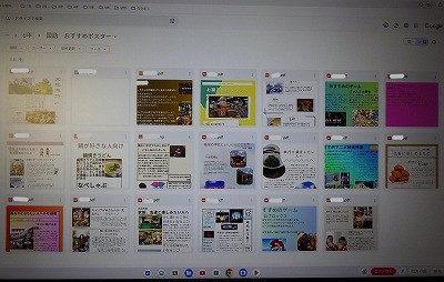 お薦めしたいテーマを決め、自分の考えが分かるようにまとめたポスターをクラスで読み合い、付箋を使って感想を伝え合っていました。授業終了のチャイムが鳴っても「放課にも付箋に書きたい」と声が出ていました。個性光るできばえで、クラスだけでなく、他学年の児童にも見せてほしいとお願いしました。多様性を大事に個人を尊重しあえる取組でした。