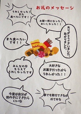 子どもフードドライブ活動をされている方が来校され、お礼のメッセージをいただきました。先日、学校に来校された地域の方が、玄関口のボックスを見て活動を初めて知ったと言ってみえました。ボランティア団体の方から「余っている食品があれば寄付するのが当たり前の社会になってほしい」という願いを語られています。やさしい共生社会を目指したいですね。