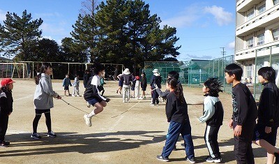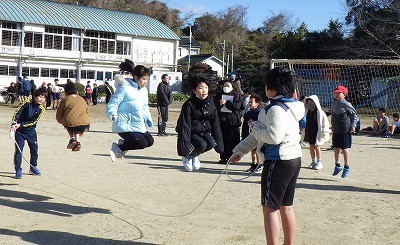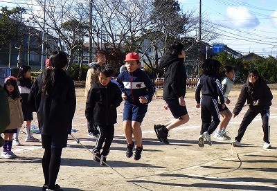 大雪予報で実施が危ぶまれていましたが、行うことができました。名人チャレンジで最後まで残った人、おめでとうございました。ひっかかかってしまって涙ぐむ友達に駆け寄り、優しい言葉をかけている人がいました。8の字跳び、多人数跳びでは、「大丈夫」「いけるいける」6年生の励ます声に、うれしく幸せな気持ちになりました。「笑顔で I like me」自分を好きになる時間をもつことができましたね。保護者の皆様、応援ありがとうございました。