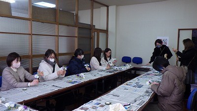 6年生保護者の方を中心に卒業生の胸に飾るコサージュを作っていただきました。和気あいあい楽しい雰囲気の中、お祝いの気持ちの詰まった素敵なコサージュができあがりました。ありがとうございました。