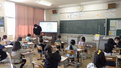 アンケート調査をして分かったことをグラフや表にして発表していました。ペットについて、ゲームについて、行ったことのある地域について…………。聞く人に伝わるように声の大きさや、話す速さ、間の取り方など意識して発表していました。