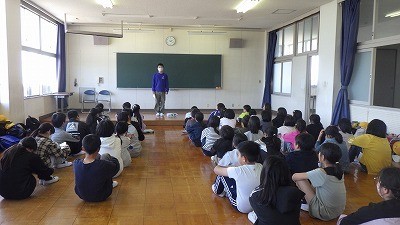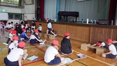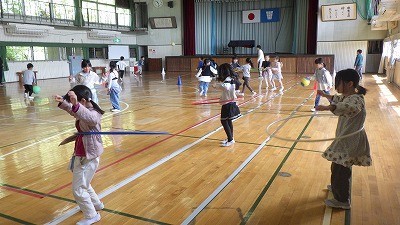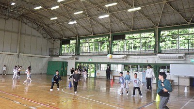 運動場のコンディションが悪いため、外では遊べません。1・2年生が、体育館の優先使用日でした。ドッジボールをしたり、フラフープで遊んだりして楽しく体を動かしていました。