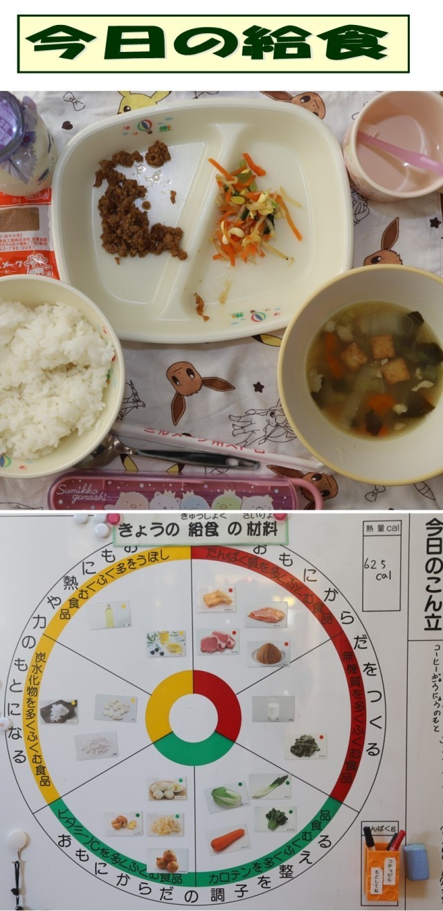 海でとれた わかめ は、熱いお湯でさっとゆでると、きれいな緑色 になります。今日は、わかめをたっぷり使 った中華スープです。おいしく食 べましょう。(給食委員の昼の放送より)