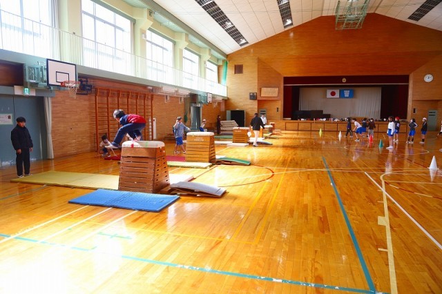 台上前転 担任の先生の話をしっかり聞いて上手に回転していました。