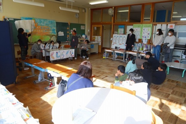 給食では、毎月1回 あかもくを使 った料理がでます。献立表には、キャラクターのイラストがついているので探してみてくださいね。地元の味を味わって食べましょう。 (給食委員の昼の放送より)