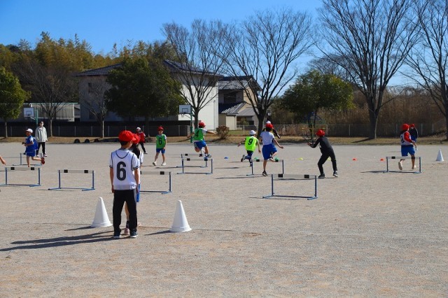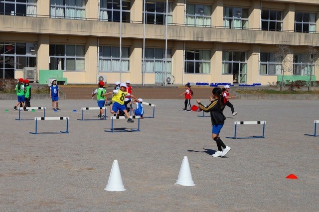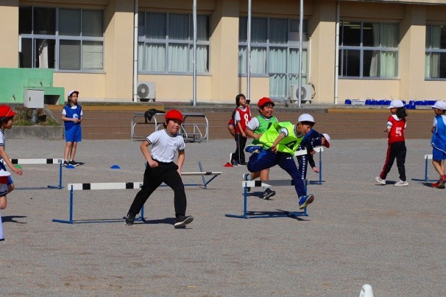 ハードル走 きちんと足を前に出して跳んでいますね。