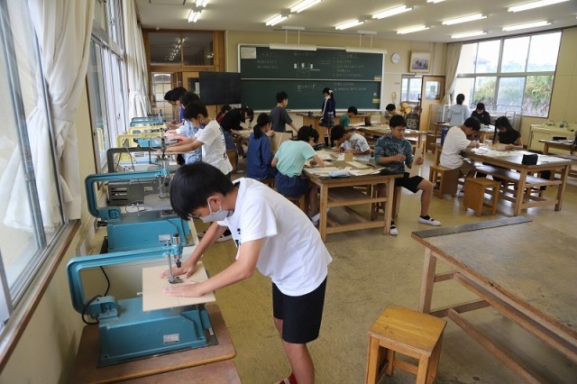 材料を生かし、使えるものを作ります。糸のこ 上手に使っていました。