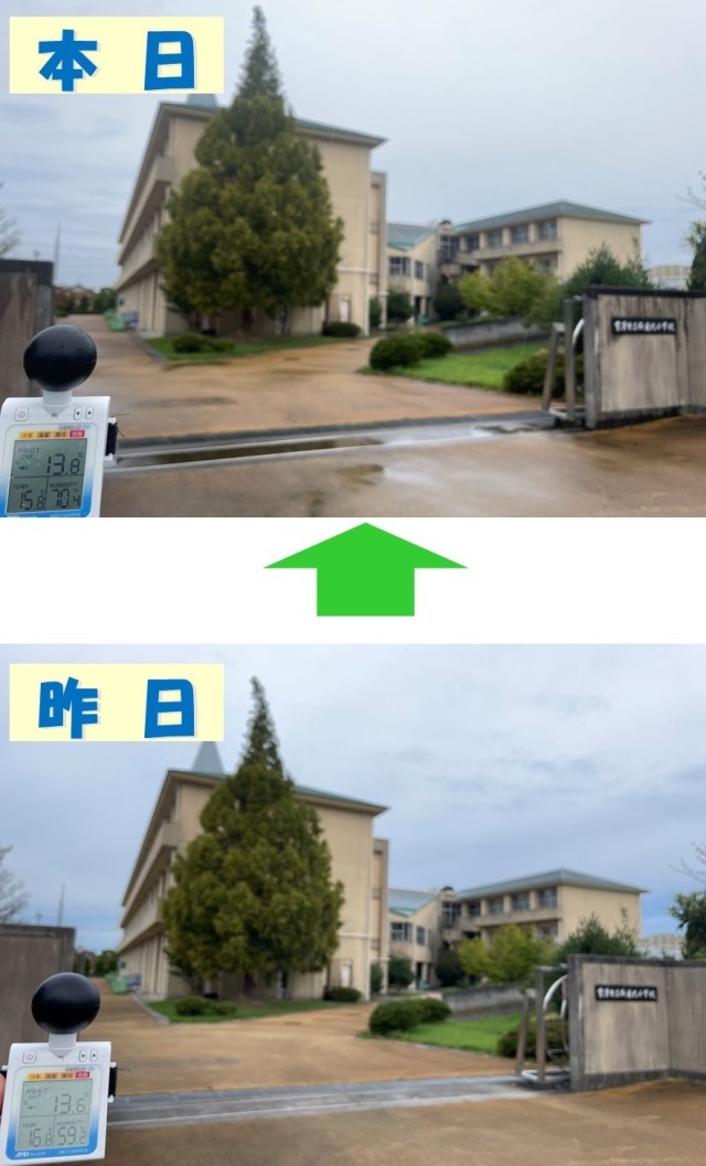霧雨も降っていて、気温もぐっと下がりました。(7:30では、13.7℃でした)