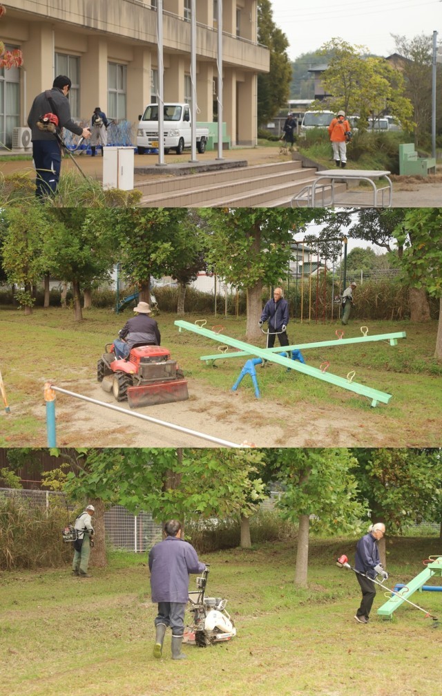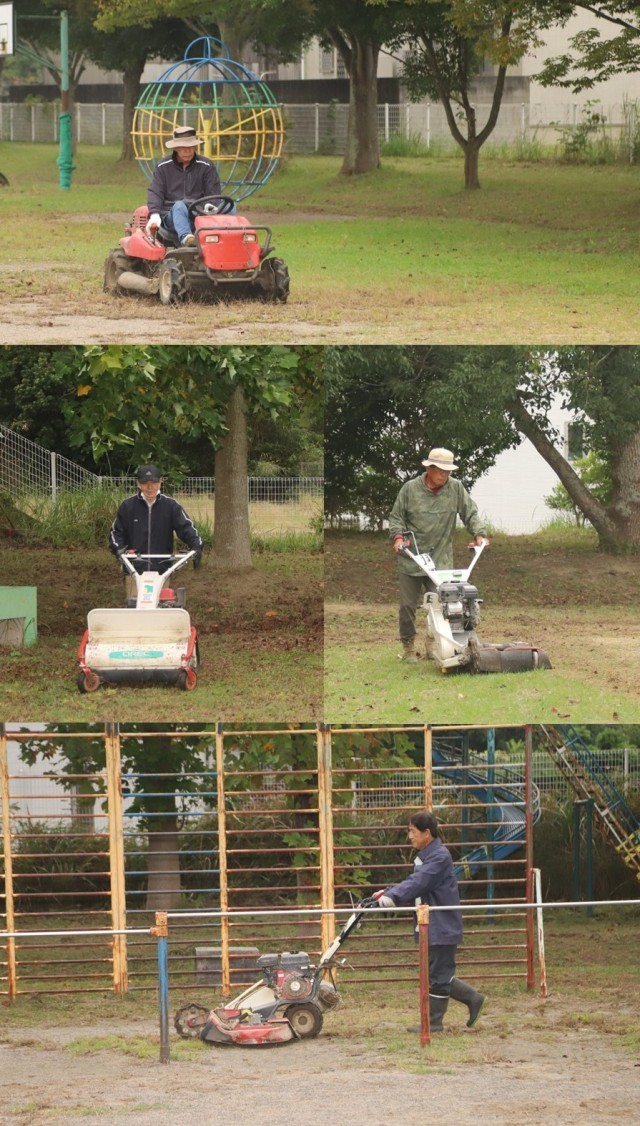今日は、小雨降る中、樽水保全隊の方に運動場の草刈りを行っていただきました。来週は、運動会。気持ちよく迎えることができます。