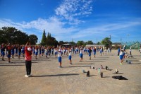 昨日(27日)悪天候のためできなかった,すもう・ケンケンすもう大会の会場設営を本日早朝から行っています。