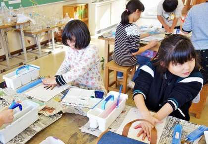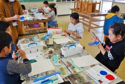 2年生が絵の具を使って手形をとりました。生活科の単元「大きくなった自分のことをふりかえろう」の取組として行いました。