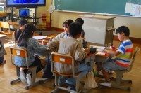 【写真上・中】届けられた祝電です。歴代担任の先生をはじめ,多くの方からお祝いのメッセージをいただきました。