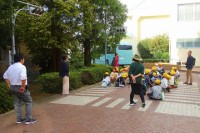 【写真下】式場を飾る花を体育館の外に移動しました。明日,式場内に並べます。