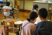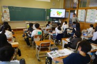 そんな中、校門では、ルーティンなのか、観察池をのぞき込む子が数名いました。