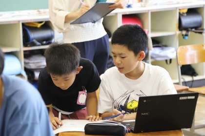 なぜ、日本では、寒い地域で「たくさん」「おいしい」お米を作ることができるかを考え、友だちと関わることで、さらに深めていました。
