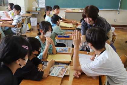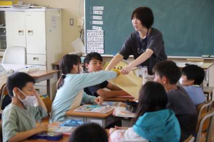 ふくろの中に入っている単語のスペルが書いてあるカードをひき