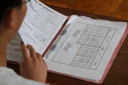 琴を体験するために、日頃見慣れない楽譜を覚えていました。