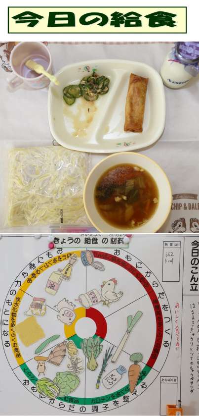 チンゲン菜は、「茎の青い葉」という意味です。チンゲン菜には。風邪を予防するビタミンAや骨を丈夫にするカルシウムが多く含まれています。(給食委員の昼の放送より)